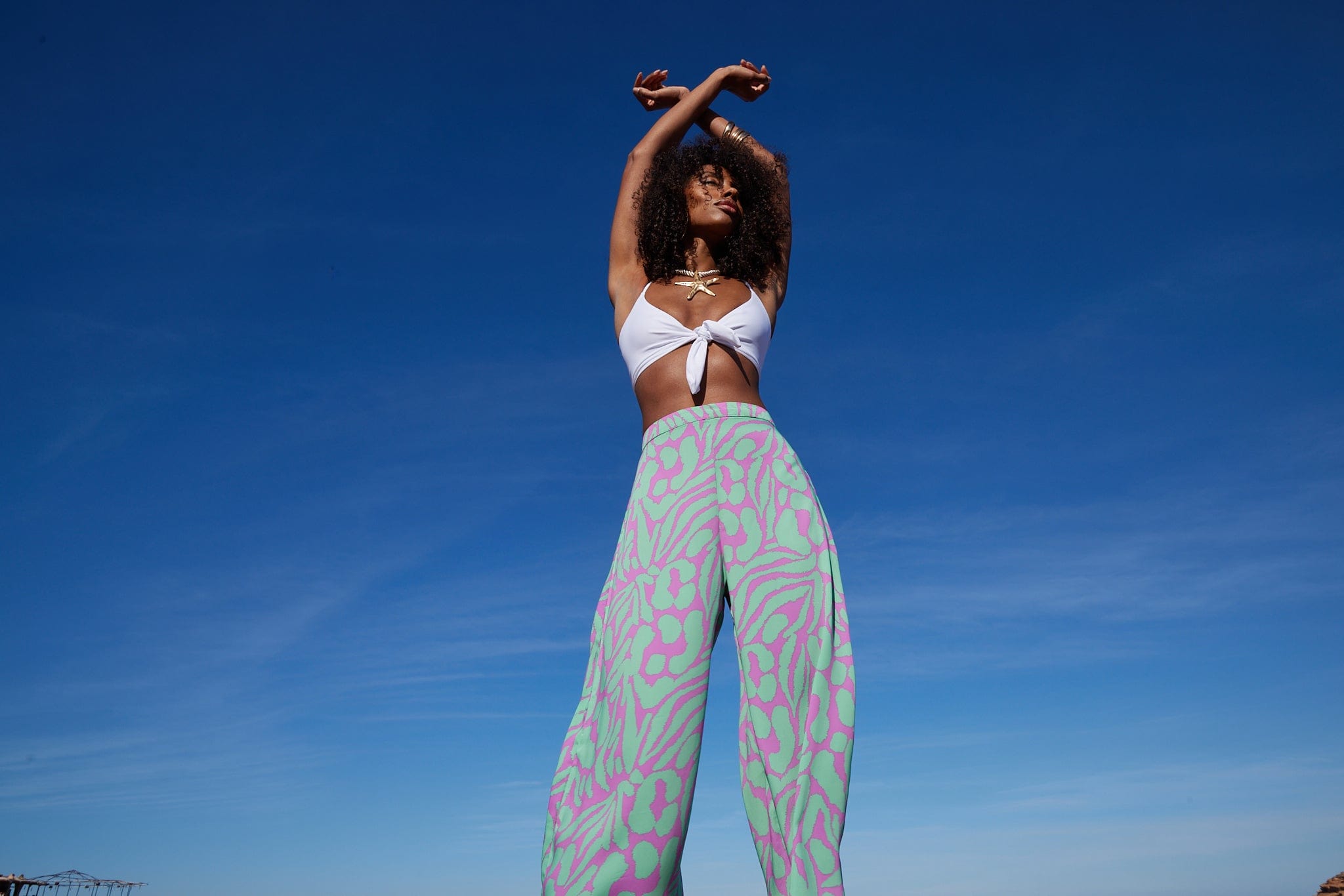 Our statement prints are one of the things that we’re best known for. Our product team, takes inspiration from the scenery in Ibiza, where they live, and our print designer (who hand-draws every single design, by the way) brings the vision to life.