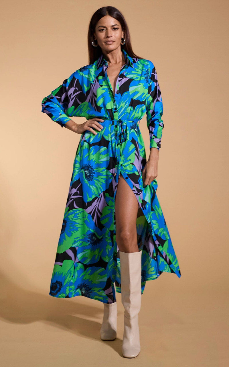 Paris Shirt Dress in Blue on Black Poppy Eco-conscious